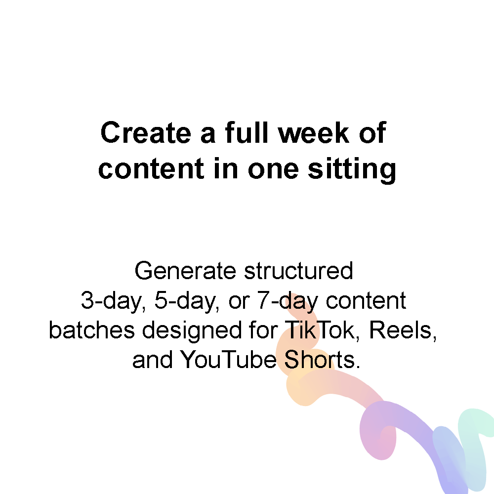 • 7-Day and Multi-Day Content Batches – Quickly generates structured daily content plans to simplify weekly posting.
