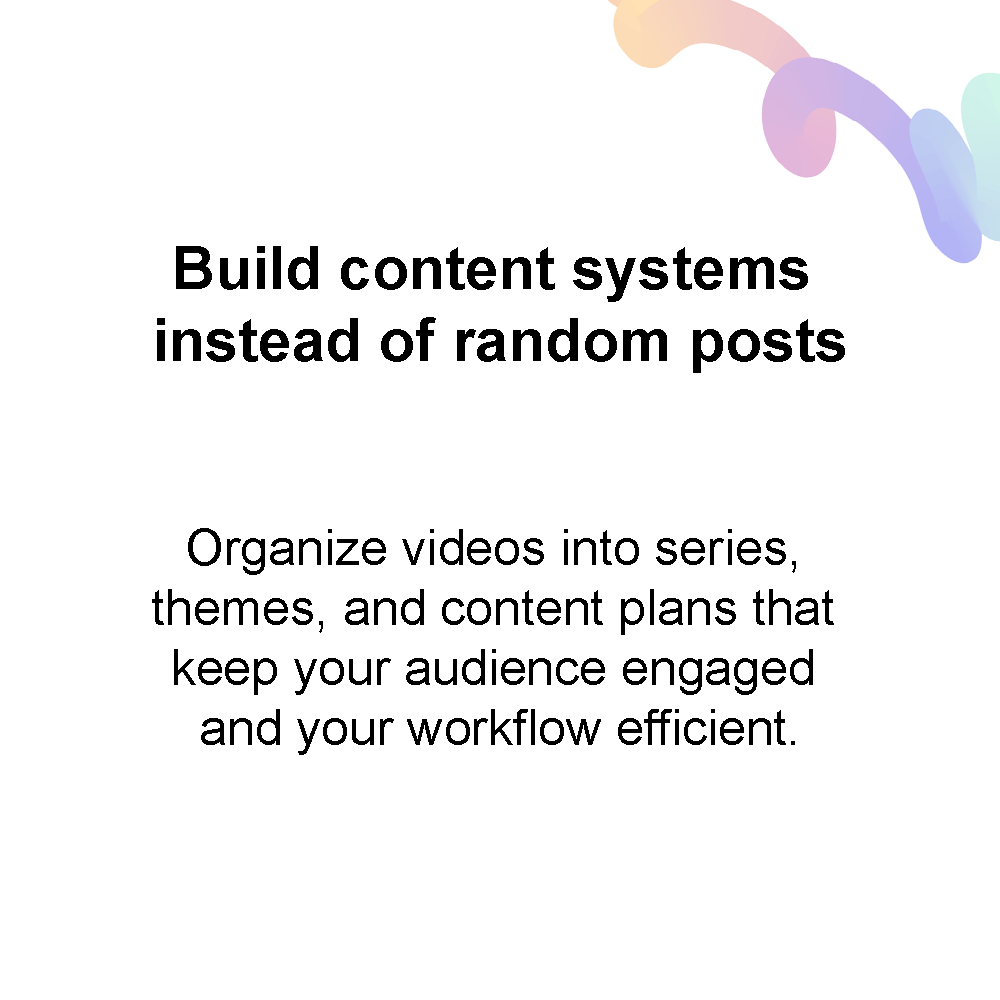 • Content Series Builder – Organizes videos into themed series that encourage consistent publishing and audience retention.