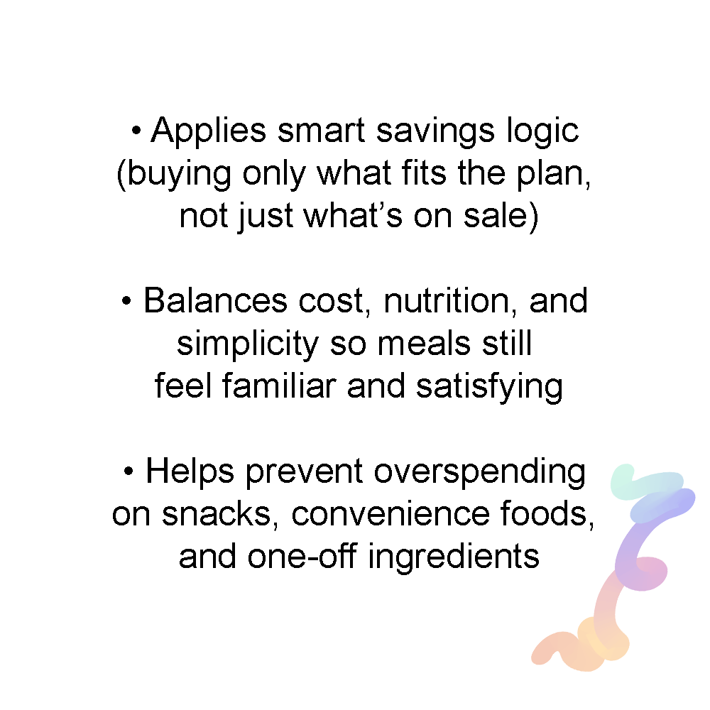 - Balances cost, nutrition, and simplicity so meals still feel familiar and satisfying